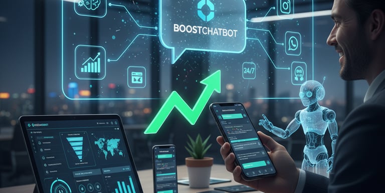 O chatbot automatiza vendas e suporte 24h via WhatsApp, integrando CRM/ERP.